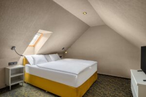 Két különálló ágy, ideális barátoknak, kollégáknak vagy testvéreknek – egyszerű, mégis minden igényt kielégítő szoba.